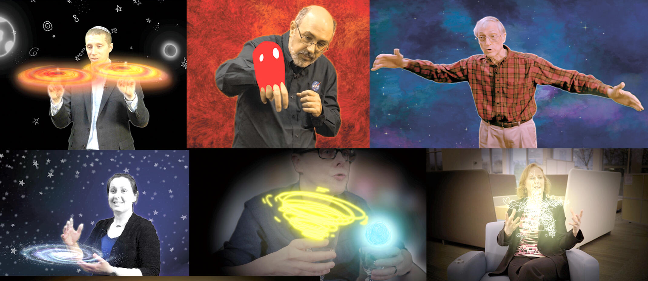 It shows how scientists use gesture, imagination, and movement to make the universe visible